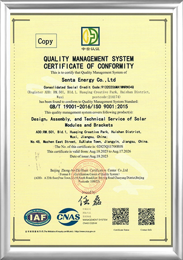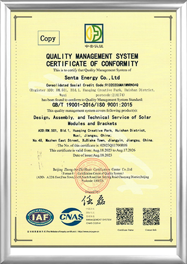 Senta Energy Co., Ltd., opgericht in 2016 en gevestigd in Wuxi, Jiangsu, is een hightech onderneming die zich voornamelijk bezighoudt met de opwekking van fotovoltaïsche zonne-energie en energieopslag, prefab woningen en gedistribueerde landbouw. Fabrikanten van zonne-energiecomponenten en Leveranciers van zonne-energiecomponentenDoor onafhankelijk onderzoek en ontwikkeling, productie, verkoop en service te integreren, streven we ernaar wereldwijde gebruikers te voorzien van totaaloplossingen voor de gehele levenscyclus van intelligente energie, intelligente gebouwen en intelligente landbouw.